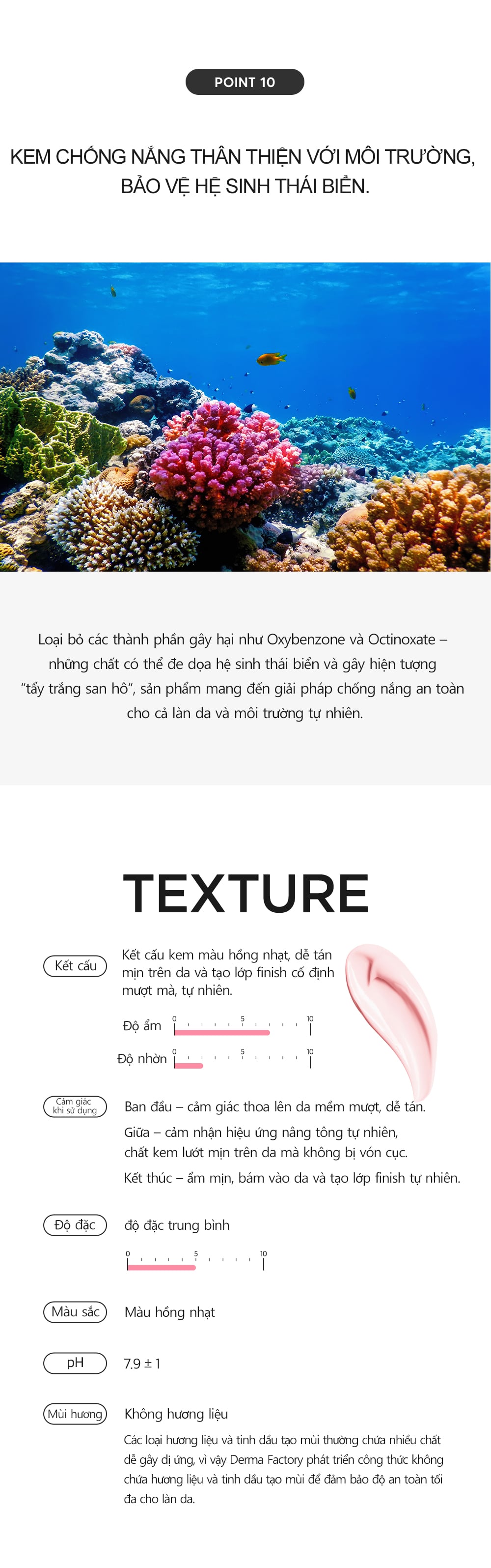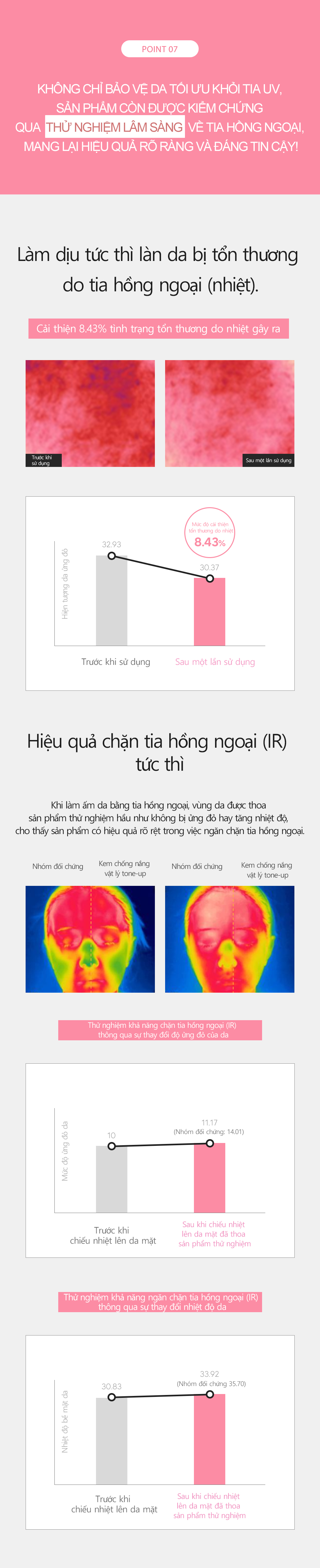 Kem chống nắng vô cơ với chỉ số SPF50+/PA++++ giúp ngăn chặn tia UV và bảo vệ da khỏi tác động của ánh nắng mặt trời. Không giống như chất hữu cơ hấp thụ và giải phóng tia UV dưới dạng nhiệt, chất vô cơ tạo thành một rào cản vật lý trên bề mặt da chống lại tia UV để bảo vệ da. Vì vậy, ngay cả làn da nhạy cảm cũng có thể sử dụng mà không cần lo lắng.